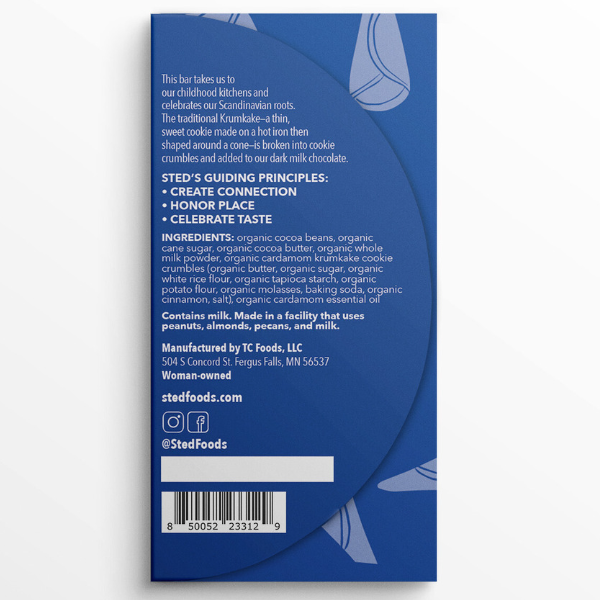 Crumbly krumkake cookies meet silky milk chocolate in this pint-sized Nordic adventure, infused with cardamom's cozy warmth. A playful passport to Scandinavia that proves the best treats come in small packages.